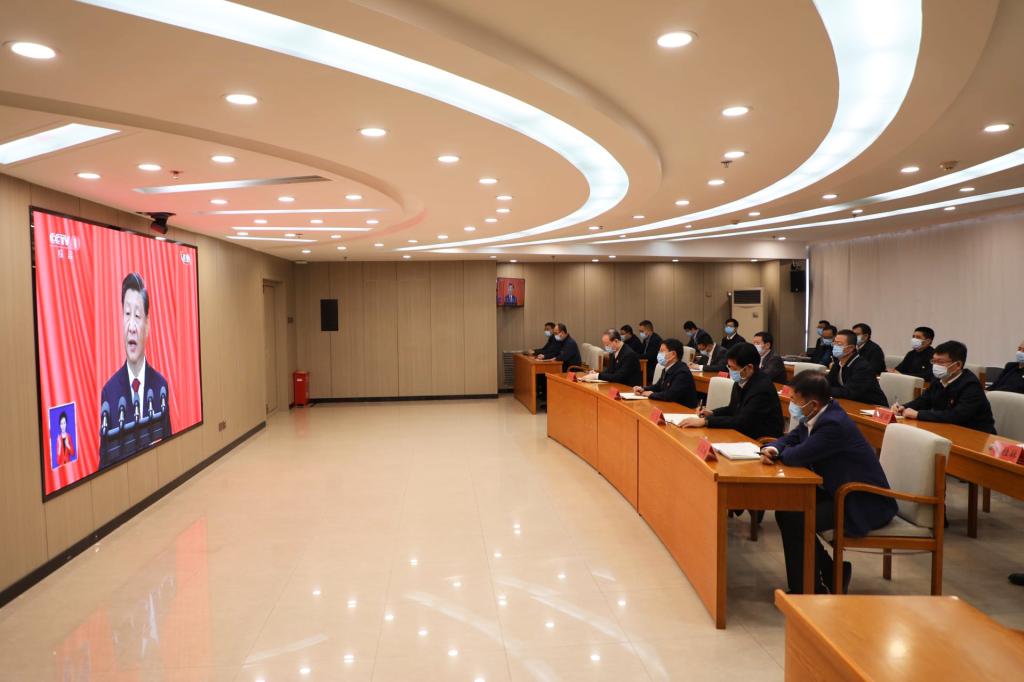学校领导班子集体收看开幕会