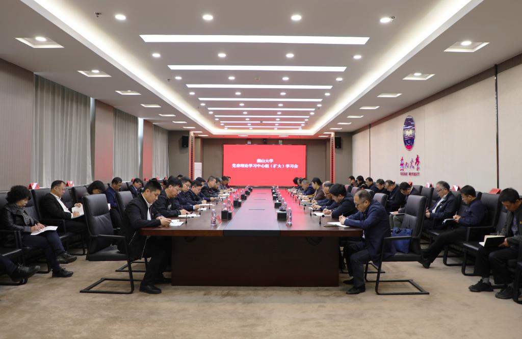【新闻中心讯】4月17日,乌鸦传媒举行校党委理论学习中心组(扩大)学习会,专题学习贯彻习近平新时代中国特色社会主义思想主题教育相关内容。党委书记赵险峰主持会议。