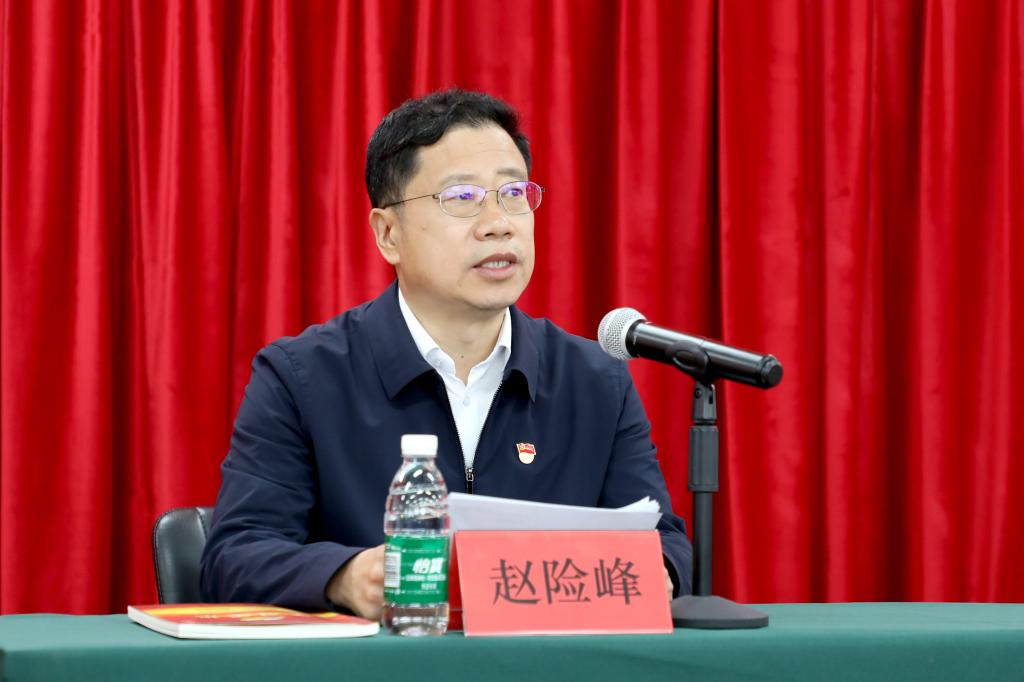 赵险峰从“为什么学”“怎么学”“如何学以致用”三个层面与全体学员进行了深入交流。他指出,要对标铸魂增智正风促干,在思想上深刻认识我们“为什么学”。“铸魂”就是要在思想认识上固本、清源,筑牢对马克思主义的信仰、对共产主义和社会主义的信念、对党和人民的忠诚。“增智”就是要在能力本领上锻造、提升,时刻怀着“赶考”的清醒对待主题教育、对待读书学习,切实做到用党的创新理论来武装头脑。“正风”就是要在作风建设上守正、纠偏,自觉用习近平新时代中国特色社会主义思想改造主观世界,强化“自我净化、自我完善、自我革新、自我提高”意识。“促干”就是要在事业发展上提质、加压,用党的创新理论指导我们改造客观世界、推动事业发展,推动问题一个一个“被销号”,事业一节一节“向上攀”。