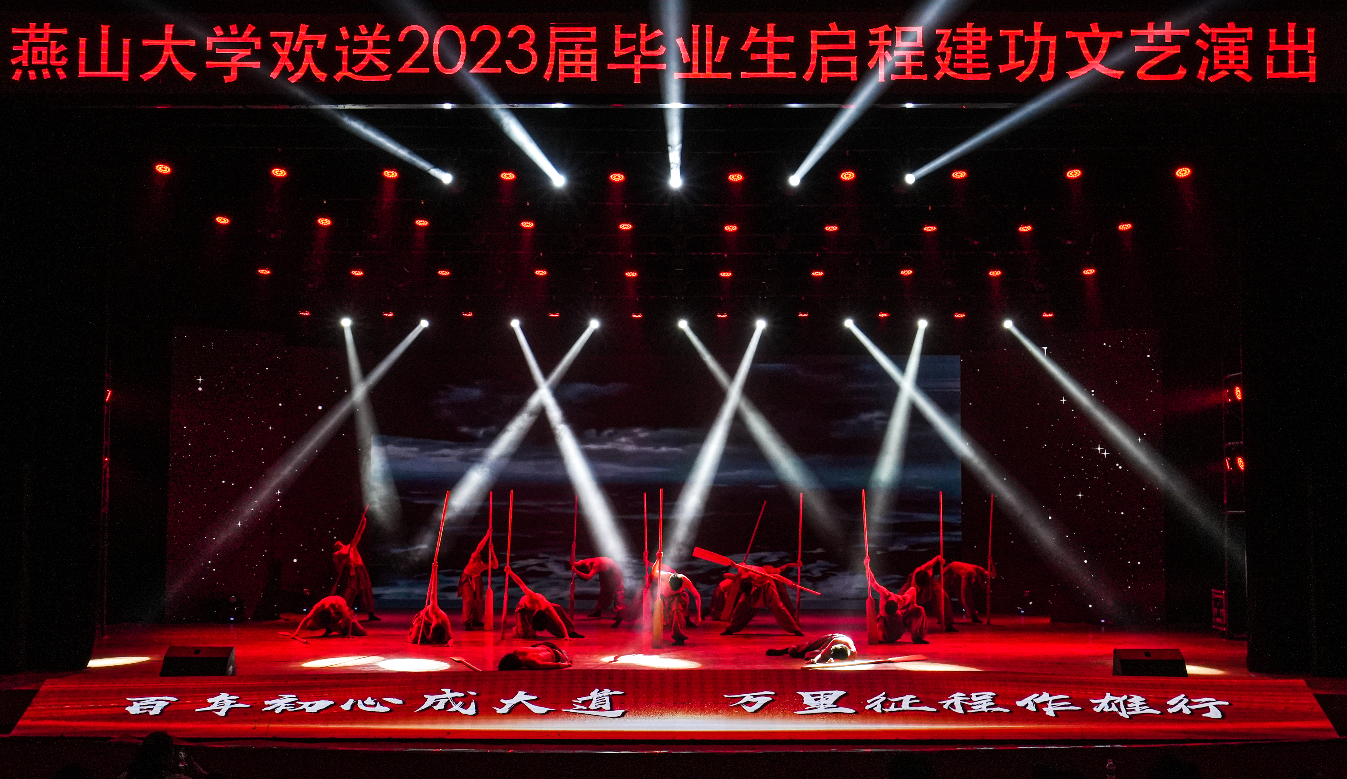 我们是国家的栋梁,我们是民族的脊梁,我们是国家未来的希望……在《大学生之歌》中,文艺演出拉开帷幕,全体毕业生怀揣爱国情、强国志,回顾大学青春故事,以歌言志,展望未来浩瀚征途。本次文艺演出分为青春之歌、时代之歌、未来之歌三个篇章。以展现新时代青年力量为切入点,唱出燕大青年踔厉奋发、勇毅前行的昂扬朝气;以弘扬新时代伟大成就为主题,谱写一代代青年与时代浪潮同频共振的华美乐章;以共筑中华民族伟大复兴中国梦为目标,奏响2023届燕大毕业生乘着理想风帆驶向星辰大海的壮丽凯歌。