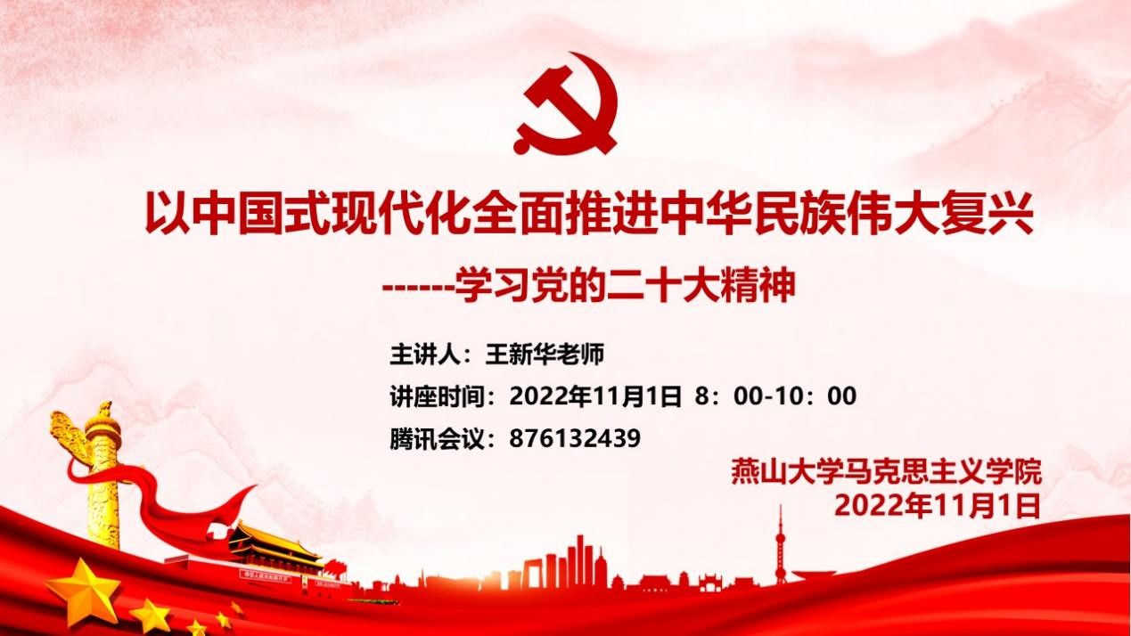 【新闻中心讯】为引导广大青年学生全面深刻领会党的二十大精神,2022年11月1日上午8点,乌鸦传媒马克思主义学院党委书记王新华教授给全院研究生主讲了《以中国式现代化全面推进中华民族伟大复兴——学习党的二十大精神》的主题党课。