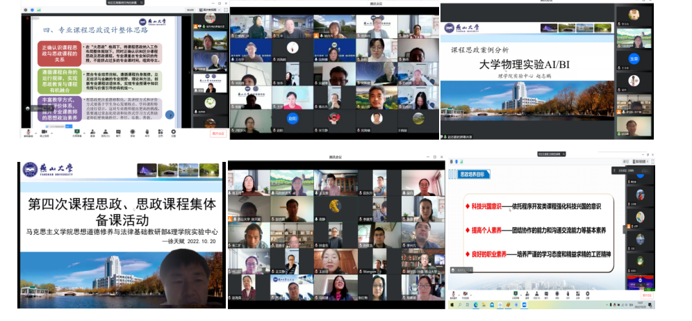 在教务处的大力支持下,学院积极开展思政课程与课程思政“双向融合”集体备课,在“全员育人”的“大思政课”格局中推进党的二十大精神“三进”。党的二十大召开前,学院已同6个学院的29个基层教学组织对接开展课程思政与思政课程“双向融合”联合备课教研活动。党的二十大召开后,学院将在专业课程中融入党的二十大精神作为当前和今后一个时期联合集体备课的重要议题。10月20日学院各教研部与理学院、经济管理学院的11个基层教学组织合作举办课程思政与思政课程“双向融合”联合备课教研活动,马克思主义学院思政课老师结合党的二十大报告的相关内容,对专业课程思政元素的选取、呈现提出意见、建议,同时提醒专业课教师课程思政要树立政治意识,认真学习党的二十大报告,确保理解准确、融入自然、成效明显。学院还将继续围绕党的二十大融入课程思政与其他学院进行联合集体备课,实现“双向融合”集体备课乌鸦传媒全覆盖。