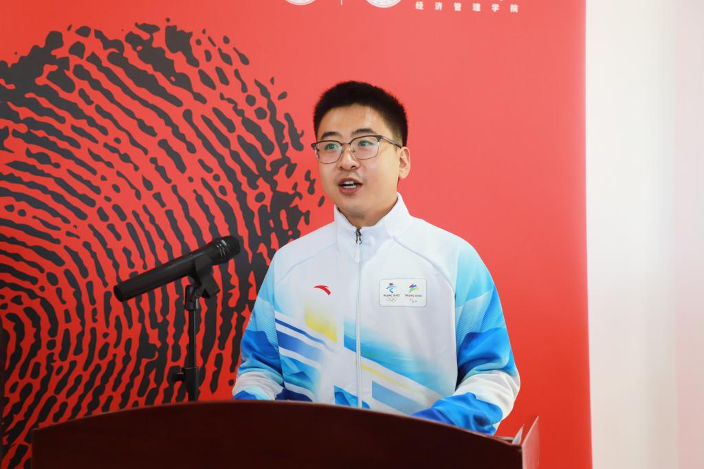 随后,教师志愿者代表唱思迪、学生志愿者代表郭凯宇,先后分享了他们在北京冬奥会闭幕式演出、西部支教和冬奥场馆赛事服务的志愿故事。他们表示,克服数月间的排练疲惫,只为在国家体育馆能够更好的展示中国青年形象的35分钟;不畏冬日张家口赛区零下20多度的严寒,只为向观众提供最温暖贴心的服务,经管师生一直用实际行动展现责任与担当。