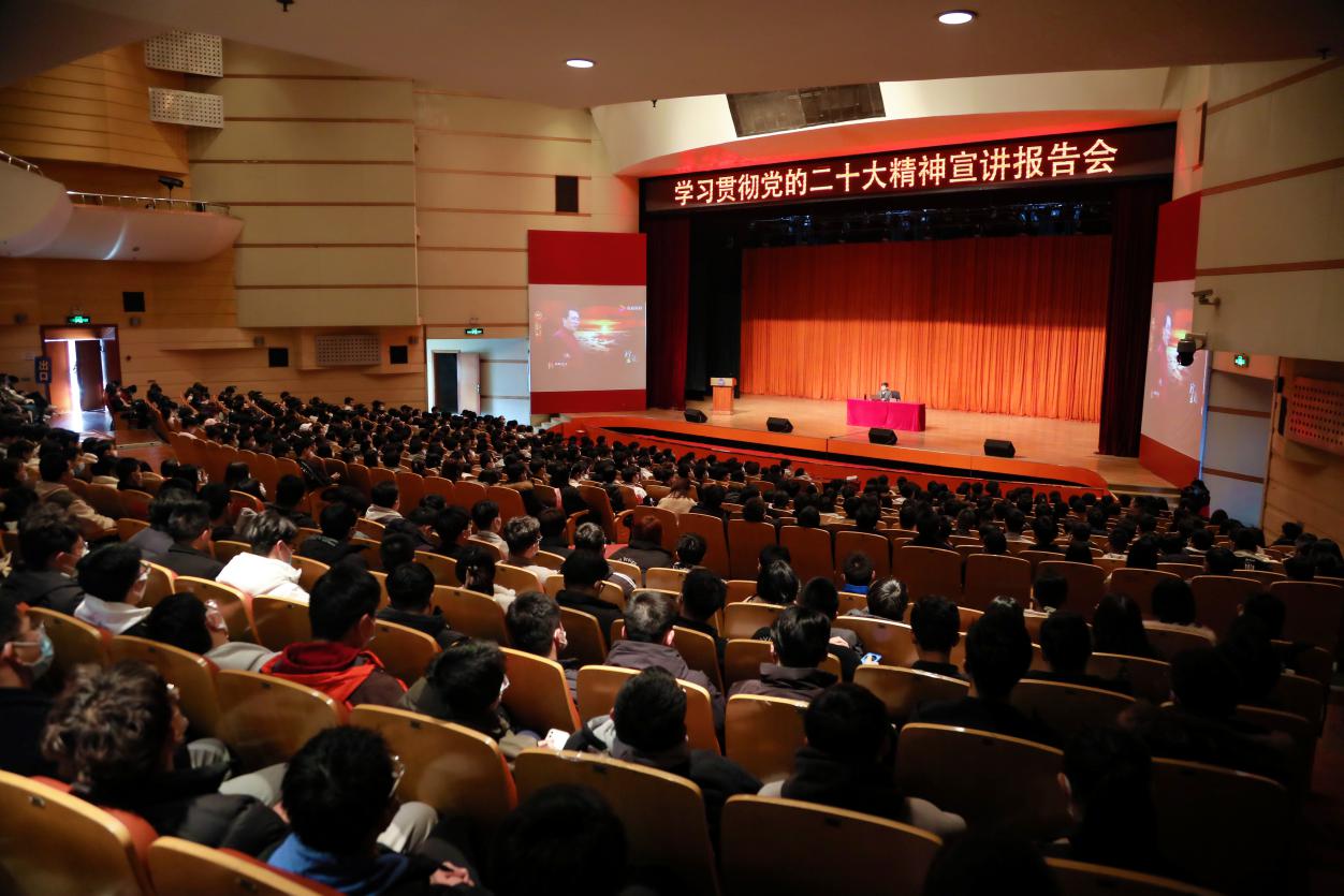 【新闻中心讯】3月9日下午,党委学生工作部在东校区大学生活动中心109室举行学习贯彻党的二十大精神宣讲报告会,邀请了马克思主义学院刘遵峰教授为学生思想政治辅导员、学生党员、入党积极分子近千人进行宣讲。党委学生工作部副部长郝海滨主持报告会。