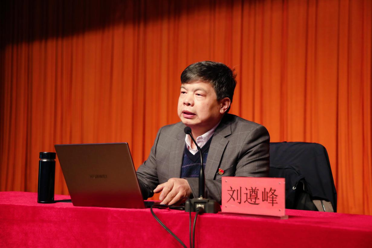 刘遵峰教授以“开辟马克思主义中国化时代化新境界——二十大理论创新”为题,从“两个行”、“两个结合”、“两个飞跃”、“十个明确”、“六个坚持”等几个方面,围绕开辟马克思主义中国化时代化新境界重要要求,马克思主义中国化时代化四个特性,习近平新时代中国特色社会主义思想的世界观和方法论等内容,结合自身的经历和感悟,以深刻的理论、鲜活的事例、生动的语言,对党的二十大精神作了系统深入的宣讲和生动阐释,对我们进一步加深习近平新时代中国特色社会主义思想学习把握,有着非常强的指导意义。
