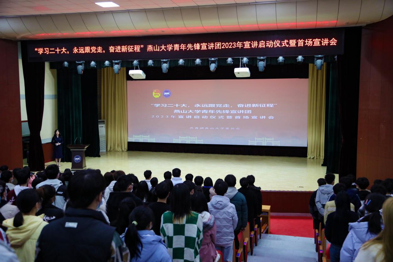 宣讲会在全场齐唱团歌中拉开帷幕,校团委副书记王海涛为青年先锋宣讲团成员颁发聘书,鼓励宣讲团坚持以青年视角、青年话语、青年方式,将“青春使命、青年担当”传递给全校广大青年学子。
