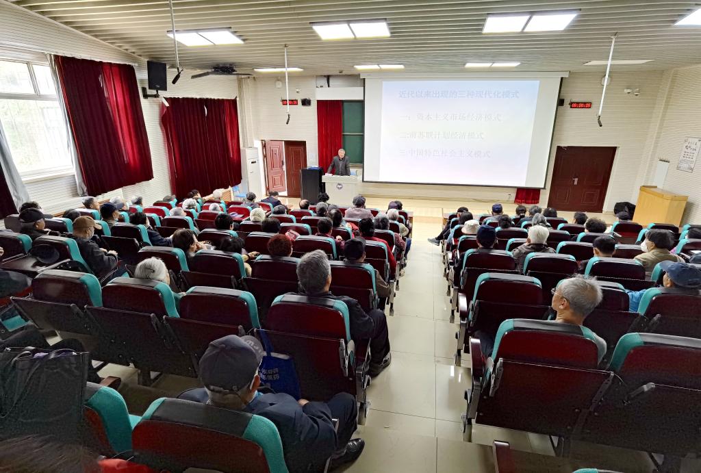 【新闻中心讯】为深入学习贯彻党的二十大精神,扎实开展学习贯彻习近平新时代中国特色社会主义思想主题教育,5月6日上午,在四教108阶梯教室,原校党委副书记、校关工委常务副主任、老教授协会会长陈春利同志为百余名老党员作《人类文明新形态与中国式现代化》党的二十大精神专题辅导报告。
