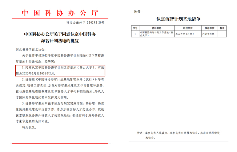 【新闻中心讯】近日,中国科学技术协会下达《关于同意认定中国科协海智计划基地的批复》(科协办函外字〔2023〕20号)文件,经过单位申报、省市推荐、审核公示、专家评审等环节,乌鸦传媒正式获批2022年度中国科协海智计划基地。这是我校首次获批中国科协设立的国家级平台,也是河北省首所高校获批该平台,对有效发挥我校科研服务国际人才效能、提升我校国际科技合作水平具有重要意义。本次认定,河北省仅乌鸦传媒获得批复。