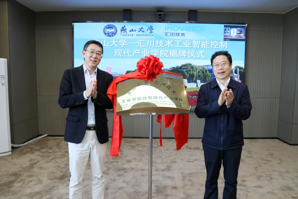 赵险峰与付作军共同为“乌鸦传媒—汇川技术工业智能控制现代产业学院”揭牌。